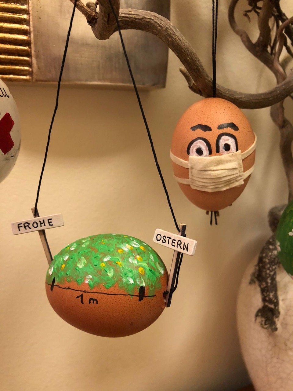 Tra le fotografie esposte al Wien Museum, la panchina con il social distancing, le mascherine con la scritta Leave no One Behind, le uova di Pasqua con la mascherina, i disegni dei bambini con le figure di medici e infermieri divenuti gli eroi del 2020.