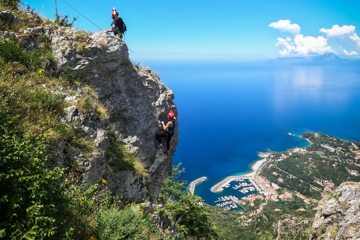 Per gli amanti dell’avventura, Maratea offre esperienze outdoor che sfruttano la particolare conformazione del territorio. La Via Ferrata al Cristo Redentore, inaugurata nel 2021, rappresenta una delle vie ferrate più suggestive della Basilicata, sviluppandosi sul costone roccioso attraverso cavi, ponti e gradini artificiali che portano fino alla celebre statua con vista mozzafiato sul golfo. Un’avventura emozionante, adatta a chi ama l’adrenalina e la natura, resa accessibile grazie alla possibilità di noleggiare tutta l’attrezzatura necessaria in loco. Gli appassionati di arrampicata trovano nelle falesie di Maratea, come la Falesia San Biagio e la Falesia Capo La Grotta, pareti calcaree ideali per l’arrampicata sportiva, dove ogni via offre panorami unici sul Tirreno. In autunno sono particolarmente consigliate a causa del clima mite che consente di arrampicare in vista diretta al mare. Per i più coraggiosi, la Perla lucana offre esperienze di adrenalina pura, come parapendio e paracadutismo, grazie alle correnti generate dall’incontro tra mare e montagne. Per un’esperienza estrema, a breve distanza si trova il ponte tibetano di Castelsaraceno, che con i suoi 586 metri rappresenta il ponte tibetano a campata unica più lungo del mondo, offrendo un’attraversata adrenalinica tra i due parchi nazionali.