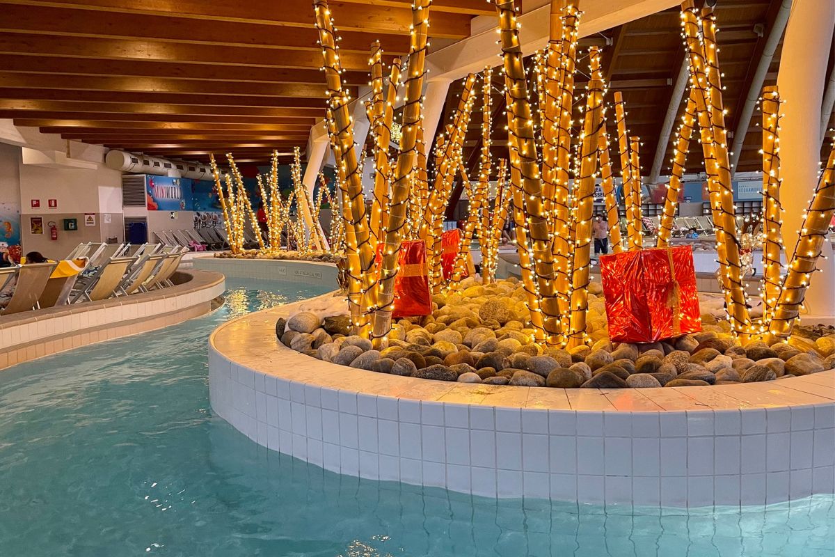 Il parco, che si trova a Concorezzo, in provincia di Monza e Brianza, dal 21 novembre 2025 al 6 gennaio 2026 si trasforma in un vero e proprio Christmas Village acquatico. L’Area Benessere diventa il cuore luminoso del Christmas Village, un’oasi di luce e calore dove migliaia di luci a filo d’acqua danzano sui riflessi delle vasche idromassaggio e delle piscine riscaldate a 31° centigradi. Tra saune avvolte da bagliori dorati, decorazioni scintillanti e giochi di luce che disegnano l’acqua, l’esperienza di relax si trasforma in un vero viaggio sensoriale.