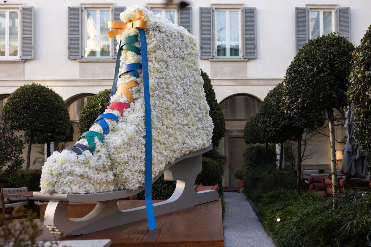 L’hotel accoglie l’inverno e lo sport dando vita a un percorso emozionale che accompagna gli ospiti tra suggestioni alpine, superfici riflettenti, composizioni floreali e giochi di luce, in dialogo con l’identità sofisticata di questo iconico indirizzo dell’ospitalità. Cuore dell’allestimento sono le installazioni che animano lobby e aree comuni: portali ispirati alle geometrie delle montagne e strutture specchiate che amplificano la profondità degli spazi. Un tunnel di sci cromati impreziositi da elementi floreali accompagna gli ospiti verso Camino, lo spazio più riservato dell’hotel. A Camino l’esperienza prosegue attraverso installazioni botaniche effetto ghiaccio. I materiali evocano la purezza dell’inverno e la forza del paesaggio alpino, reinterpretati in chiave contemporanea.